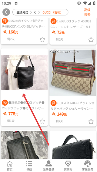 3、在古驰商品列表中选择目标商品,进入商品详情页面。