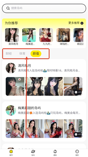 4、一般的话我们都喜欢找好看一点的博主,所以点击“颜值”
