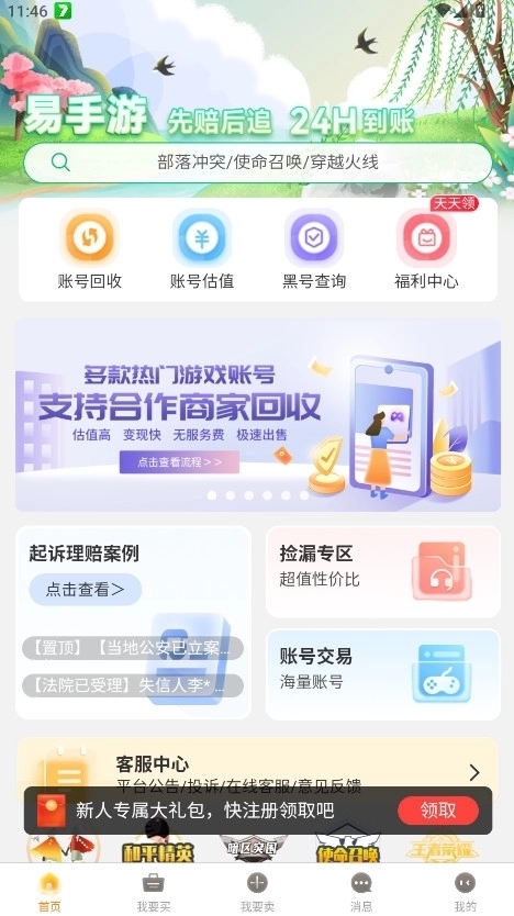 客户服务:24小时客服在线解答交易问题,支持纠纷仲裁、账号找回包赔等售后保障。