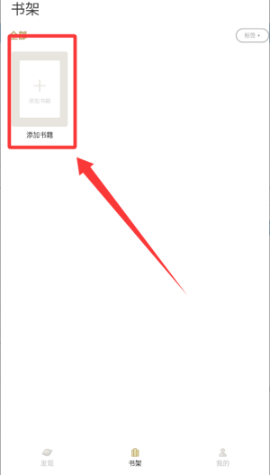 4、点击到底部书架再按左上角的添加书籍。