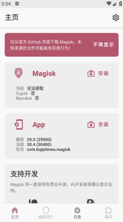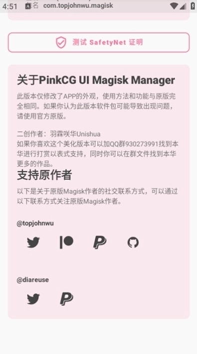 相比原版Magisk:更注重用户体验和界面设计,粉色主题界面美观且操作直观。