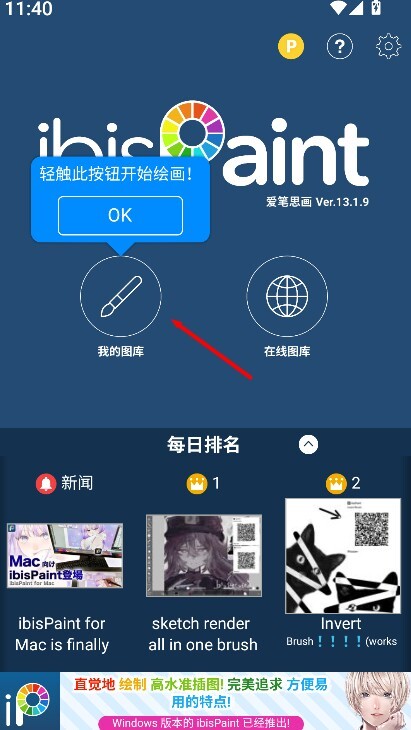 1、轻触绘画键即可进入创作界面,快速开启新的绘画过程,方便随时开始创作。