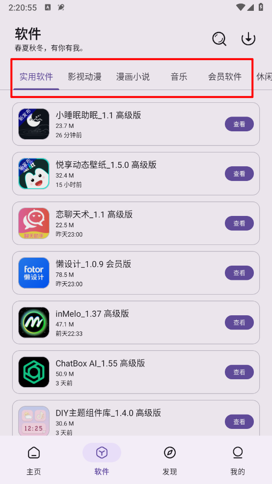 青果软件库是一个免费的软件库资源分享平台,这里涵盖了影视动漫、漫画小说、休闲娱乐等多种类型的资源,所有资源都能免费安装和使用。它的界面设计清爽简洁,没有烦人的广告,而且在平台内操作的速度非常快,一个软件就能满足你看电视、阅读小说、听歌等全部需求。