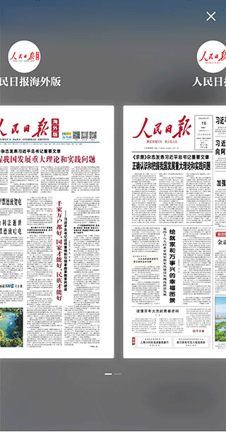 2、进入下方界面后,通过左右滑动可以查看人民日报电子报和人民日报海外版电子报。