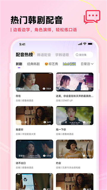 场景化学习:结合韩剧、综艺、歌曲等素材,通过配音秀功能模拟真实语境,提升学习兴趣。