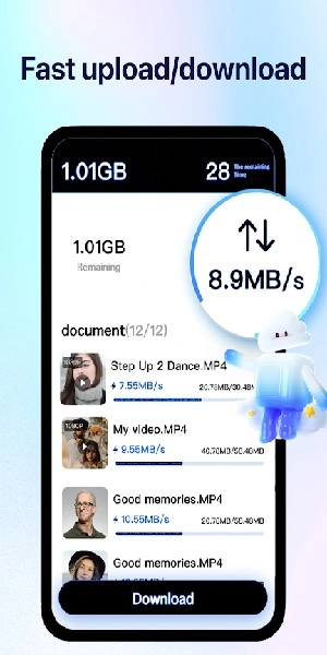 terabox中文版(百度网盘国际版)是一款功能出色的网盘应用,它提供了超大容量的免费存储空间,能帮你备份各类重要资料,像视频、文档、图片、音频等都能妥善保存。不管是上传还是下载都十分迅速,而且图片存储后画面不会被压缩,使用起来特别方便。简洁的界面设计还能让你拥有纯净的使用感受。