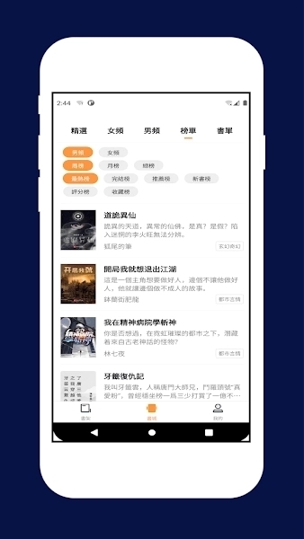 发现页:通常集成了一些第三方推荐接口,展示热搜榜、飙升榜、书单合集。