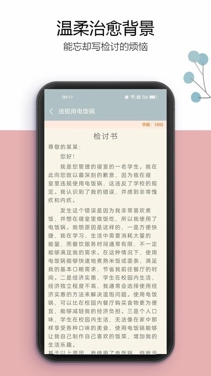 心理减压:写检讨本身是一种精神内耗,软件承担了“脏活累活”,用户只需负责“抄写”,极大缓解了因犯错带来的焦虑和羞耻感。