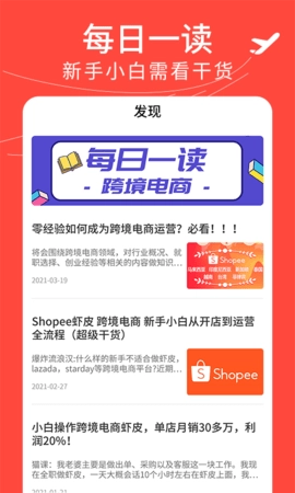 1、为用户提供新手必看版块,让新手能够更快速的入门跨境电商;