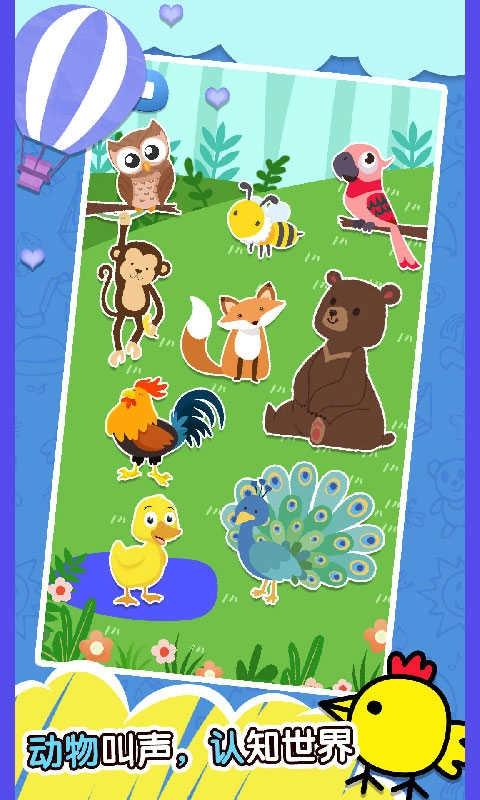 2、我们精心收录了丰富多样的动物叫声合集,每一种叫声都搭配着对应的动物形象,从听觉的角度帮助小朋友认识动物,让他们能更深入地了解不同动物,从而加深对这些动物的认知与记忆。