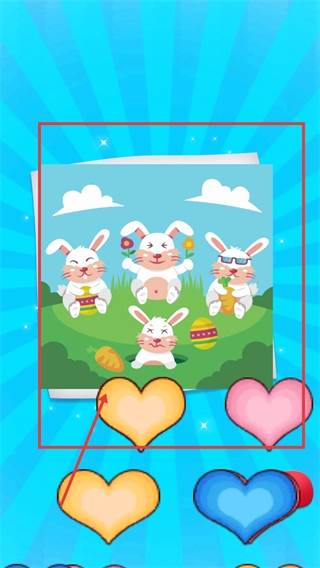 4、待拼图完成呈现完整兔子画面后,点击箭头所指的黄色心形按钮,可触发游戏的后续互动或相关奖励领取流程。