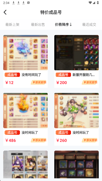 账号交易:用户可浏览、购买或出售游戏账号,平台提供自动估价与折价回收服务。