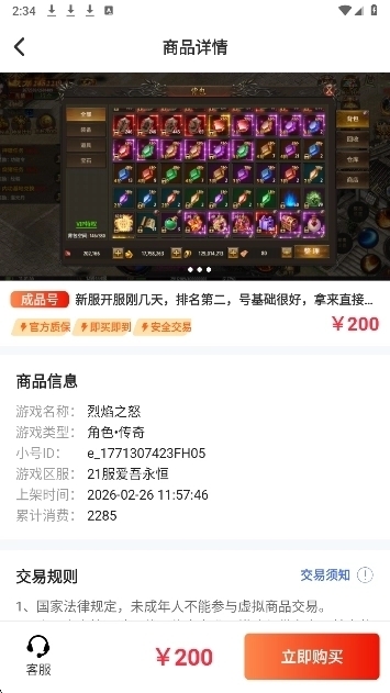 账号安全:实名认证确保交易可靠性,智能匹配系统缩短账号成交周期。