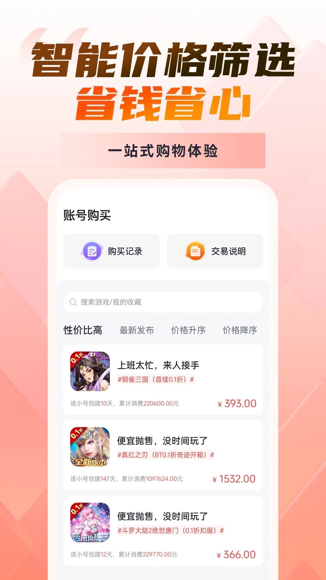 折扣比例透明可视:每款游戏、每个充值档位均清晰标注原价与0.1折后价格,让玩家一目了然了解优惠力度,消费更加透明放心,没有任何隐形消费陷阱和套路,真正做到明明白白消费。