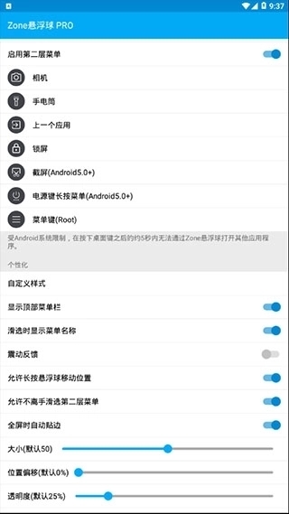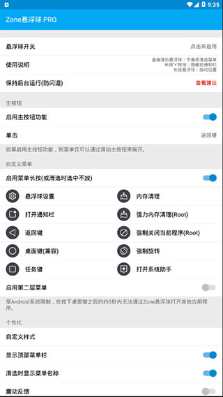 手势体系:支持单击、双击、长按、滑动(上下左右)、拖拽等多种手势,Pro版最多可为每个悬浮球配置20个不同手势操作。