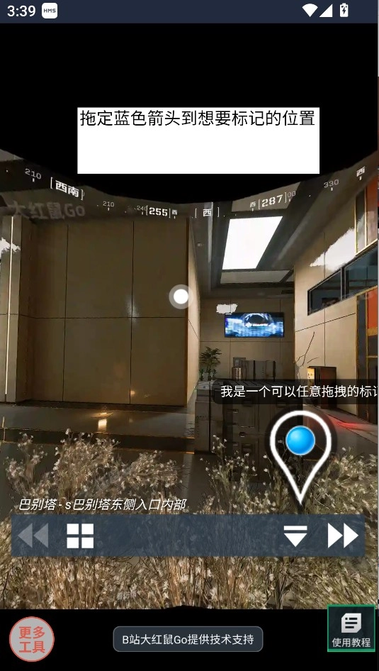 2、点击屏幕下方的箭头就能快速切换并进入房间,随后就可以开始使用地图工具了。